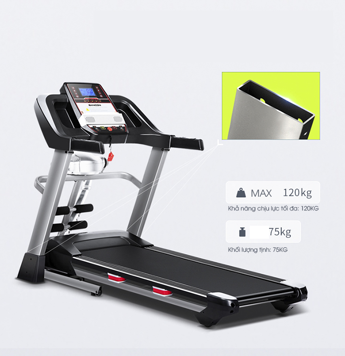 Đây là mẫu máy chạy bộ gia đình được thiết kế để đáp ứng nhu cầu đi bộ, chạy bộ (không được tích hợp khung tập bụng và đầu rung massage).
