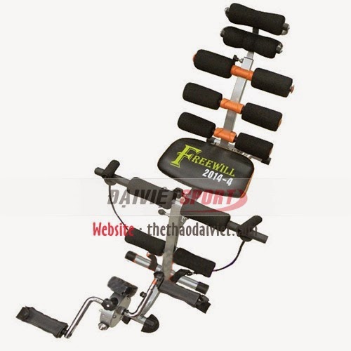 Máy tập bụng Freewill 2014 được cải tiến từ Freewill 2013, ngoài các chức năng: gập bụng, tay kéo, xoay hông, Freewill 2014 có thêm chức năng đạp chân.